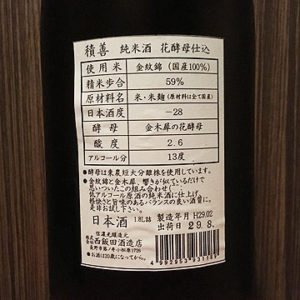 積善 (せきぜん) 純米酒 金紋錦×金木犀の花酵母 1800ml 【西飯田酒造店…